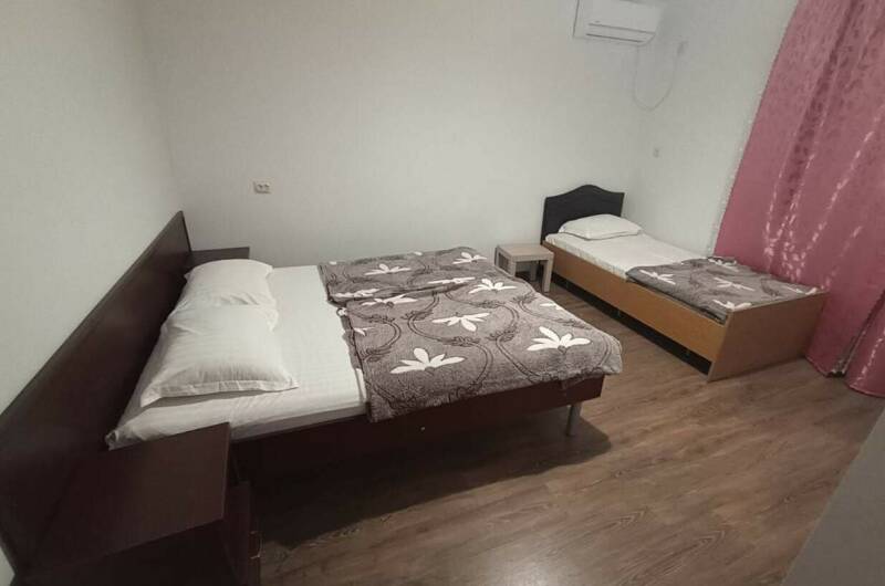Каждый номер гостевого дома оснащен всем необходимым для комфортного проживания: удобными кроватями, кондиционерами, общим или индивидуальным санузлом.